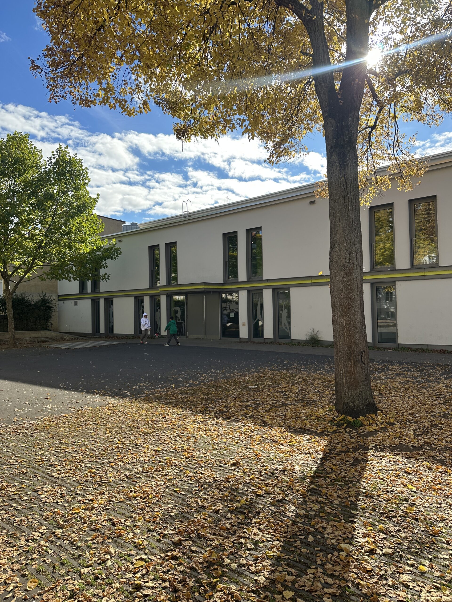 Unsere moderne, großzügige Sporthalle ergänzt das historische Schulensemble um einen leistungsfähigen Bewegungs- und Veranstaltungsraum. Der Neubau einer Doppelsporthalle wurde als Ersatz für ältere Hallen errichtet.